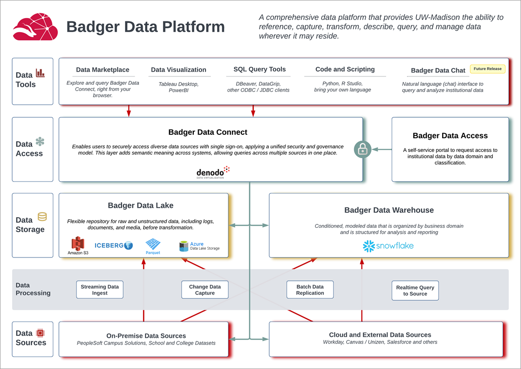 The Badger Data Platform provides a centralized, scalable, and flexible means of managing UW–Madison’s data to give our data consumers a clearer understanding of institutional data.